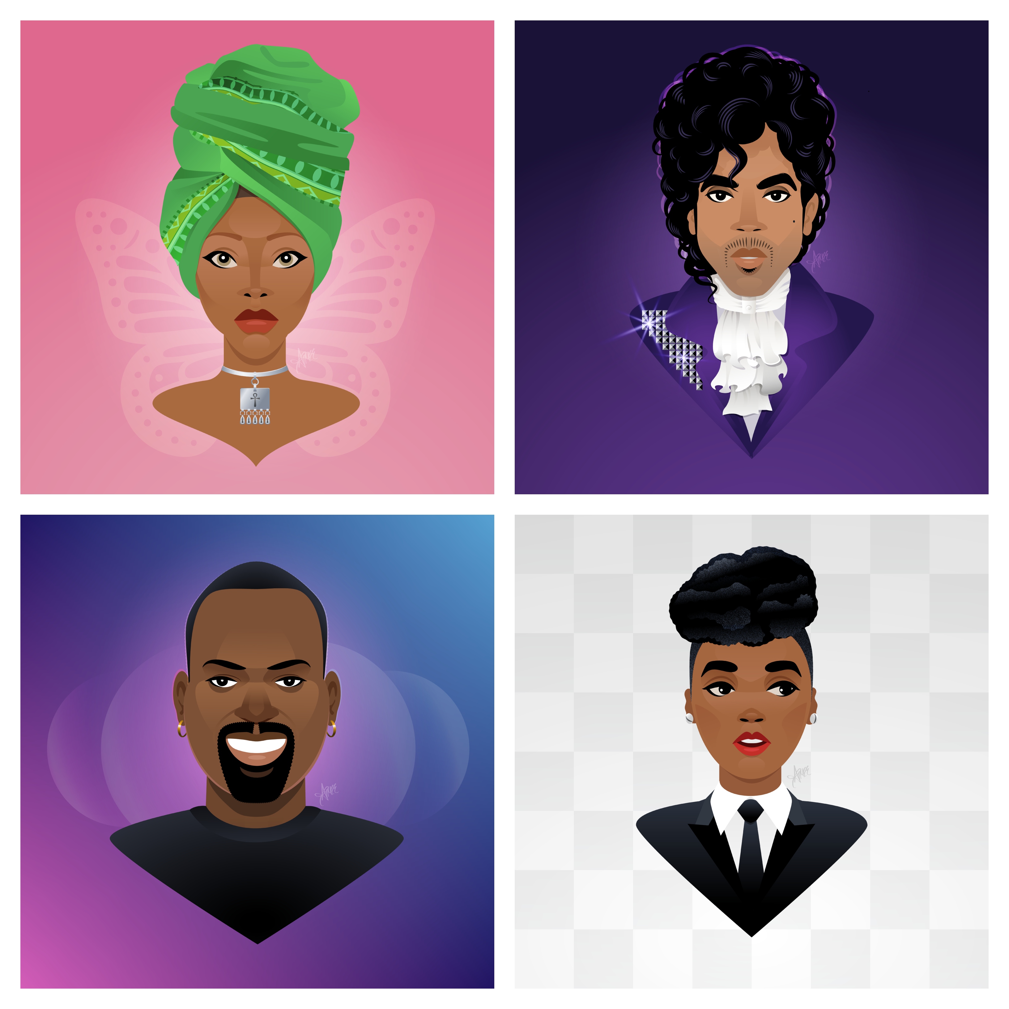 Portraits of Excellence is a living, digital illustrated tribute that celebrates the vital role of Black artistry in shaping American culture. Blending the playful charm of Saturday morning cartoons with the timeless nobility of classical Greek busts, each original portrait spotlights a Black icon whose influence continues to shape culture today.