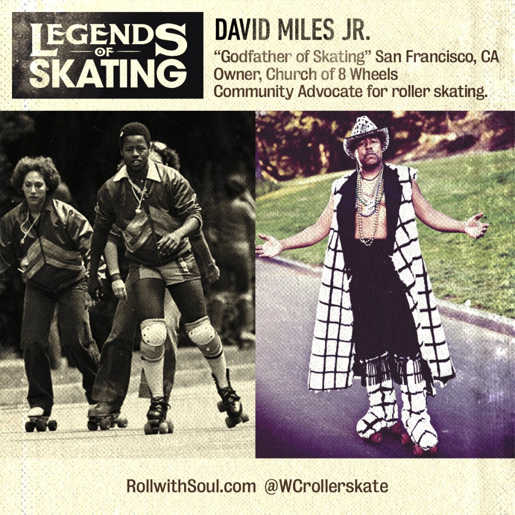 David Miles Jr. – San Francisco’s Godfather of Roller Skating While rinks are closing down across America, San Francisco’s Godfather of Skate, David Miles Jr. finds new ways to bring skating to the people. Whether indoors or outdoors, D has worked tirelessly with local community leaders for 40 years to make sure skaters have a place to skate and a funky good time doing it!